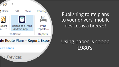 Think digital. Our full StreetSync Mobile system utilizes bTrans so that route data can be communicated to drivers' devices and their activity can be digitally collected and reported.