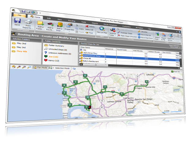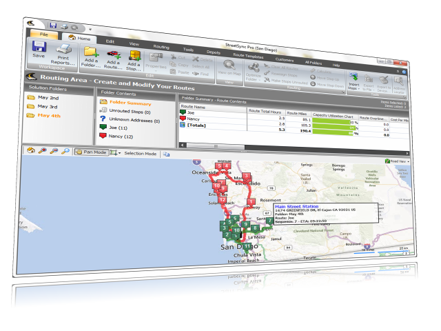 StreetSync Standard can tackle the creation and storage of literally hundreds of routes spanning entire service/delivery cycles. Routes can be maintained and improved, what-if scenarios can be created in a flash, and your decision makers are presented with exact distance and time measurements.